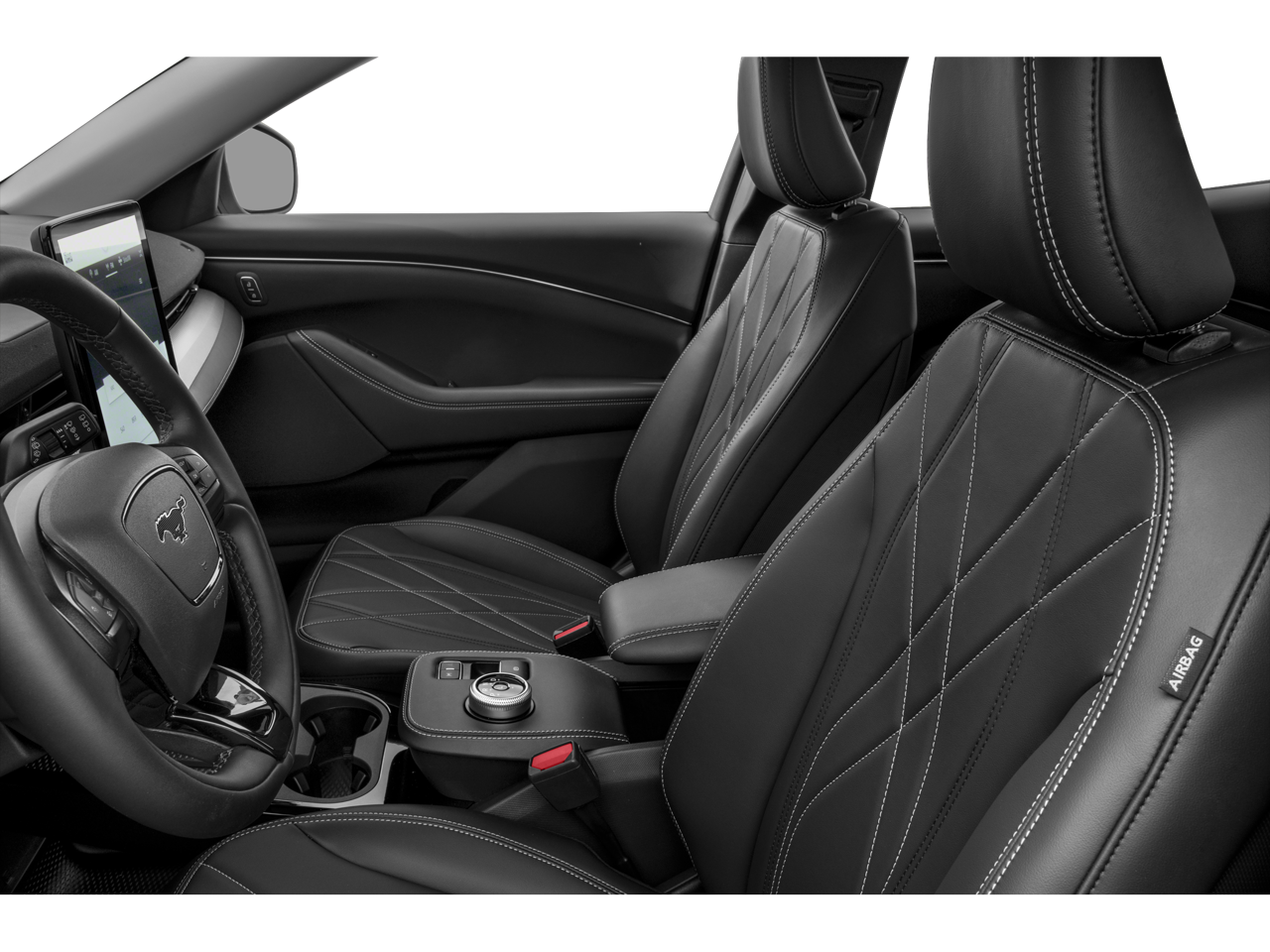 Step inside the Mustang Mach-E Select and discover a cabin that seamlessly blends style and functionality. Enjoy the comfort of the ActiveX bucket seats, the convenience of the SYNC 4A infotainment system, and the peace of mind of the emergency communication system. The Mach-E's impressive array of safety features, including the Exterior Parking Camera Rear and Auto High-Beam Headlights, ensure your journey is as secure as it is exhilarating.