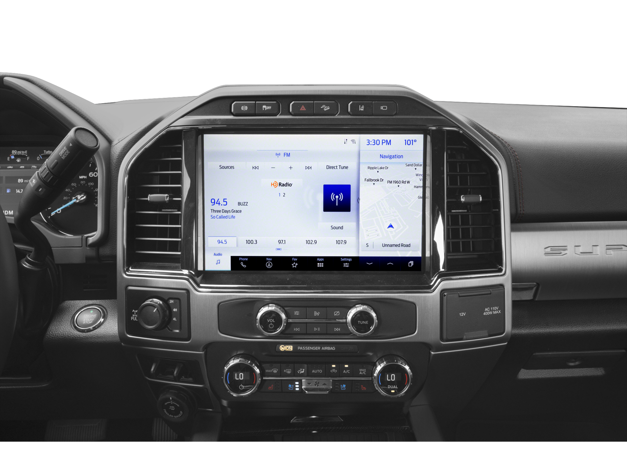 This Platinum-trim F-350SD is equipped with a host of premium features that elevate both the functionality and the comfort of your driving experience. The Tough Bed Spray-In Bedliner and 6.7L Turbodiesel engine with Intelligent Oil-Life Monitor ensure this truck is built to handle the toughest jobs, while the SYNC 4 Infotainment System with Enhanced Voice Recognition and B&O Sound System by Bang & Olufsen provide a seamless and immersive in-cabin experience.