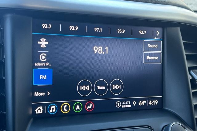 - Audio system, 8" diagonal GMC Infotainment System with Navigation includes multi-touch display, AM/FM/SiriusXM stereo, Bluetooth streaming audio for music and most phones, Android Auto and Apple CarPlay capability for compatible phones, advanced voice recognition, in-vehicle apps, personalized profiles for infotainment and vehicle settings