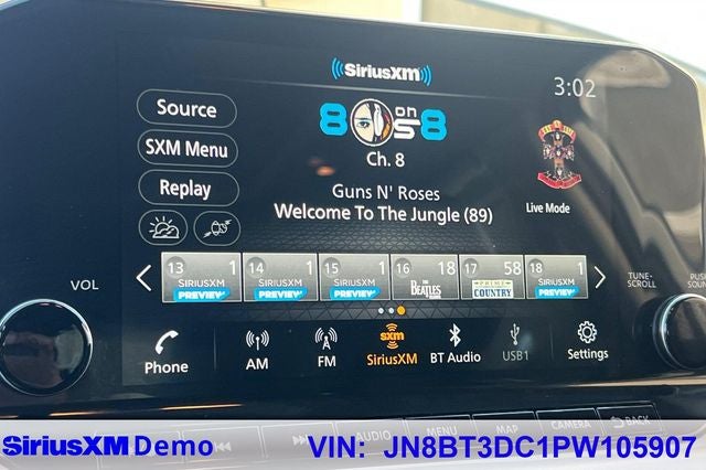 - Radio: AM/FM NissanConnect w/Navigation -inc: NissanConnect featuring Apple CarPlay and Android Auto, 9" color HD display w/multi-touch control, Bluetooth, WiFi hotspot, Nissan door-to-door navigation w/3D building graphics, satellite imagery featuring online POI search and online premium traffic information, 5 years complimentary map updates, wireless Apple CarPlay, SiriusXM Traffic, SiriusXM Travel Link, Alexa built-in and voice recognition